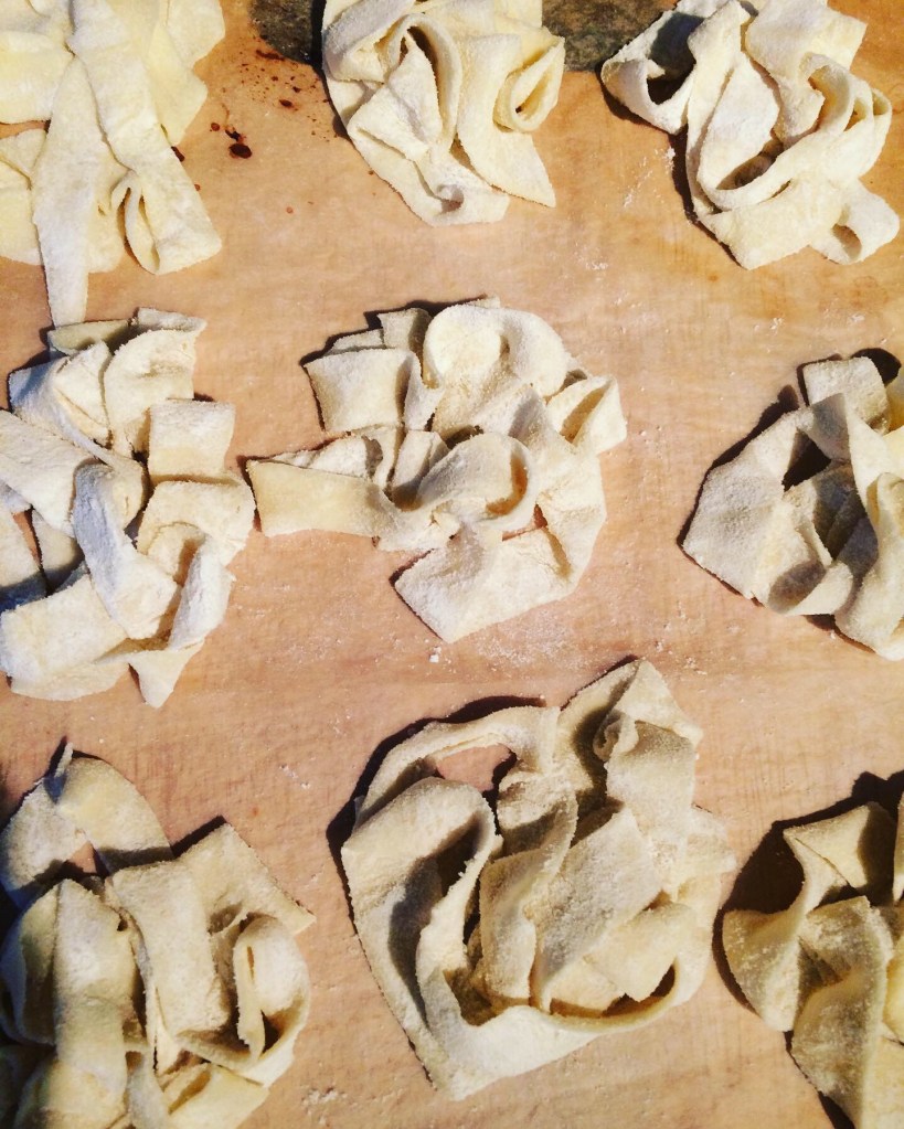 There is something cosy and homely about fresh pasta. Not that it was something often made in my home, but somehow it brings some kind of nostalgia. For simpler life? Italy? Sun and a slower pace of life? When people had time to enjoy cooking and eating meals together. Or maybe it’s a sign of me getting nostalgic? Anyhow, this pasta is easy to make and tastes really good. It’s soft and silky but firm. The addition of semolina is the secret.